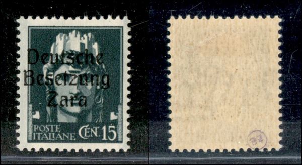 1943 - 15 cent (3/Ie) - soprastampa a sinistra - gomma originale (350)
