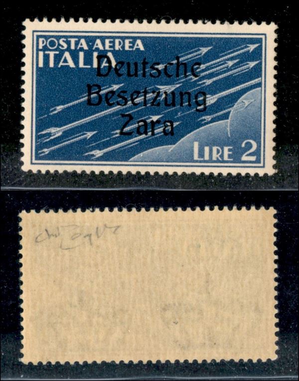 1943 - 2 lire (6zd - Aerea) con z stretta - gomma integra - Raybaudi (120)