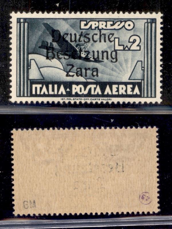 1943 - 2 lire Aeroespresso (9za) - t inclinata - gomma originale (160)