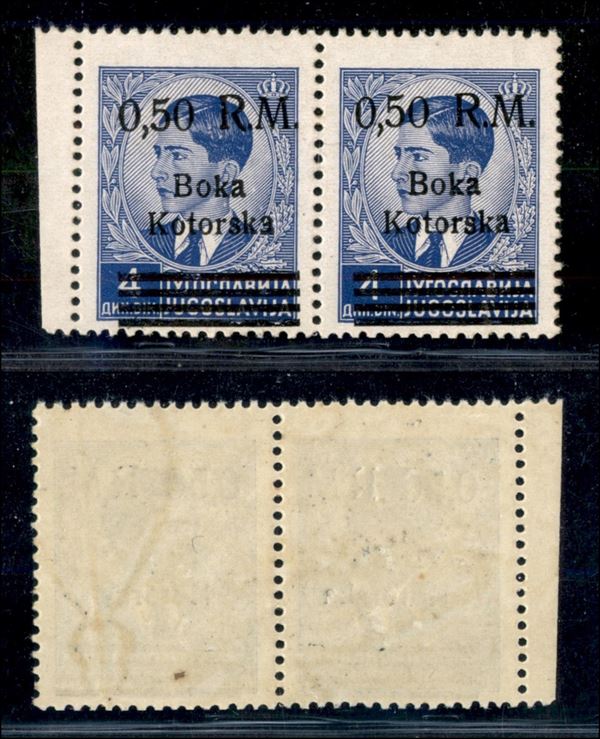 1944 - 0,50 R.M. su 4 din (10 varietà + 10) - coppia bordo foglio - ultima a diversa (3) a sinistra - gomma integra - non catalogato