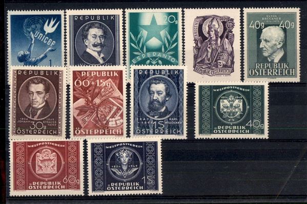 1949 - Serie complete + spezzature del periodo su cartoncino (933/936+941/947) - 11 valori - gomma integra/originale (109)