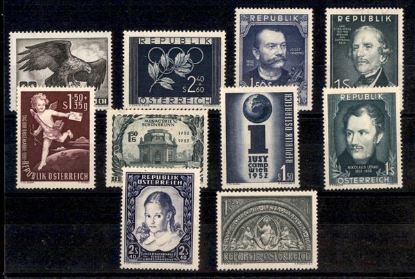 1952 - Cartoncino con 10 valori del periodo (968/977) - gomma integra/originale (97+)