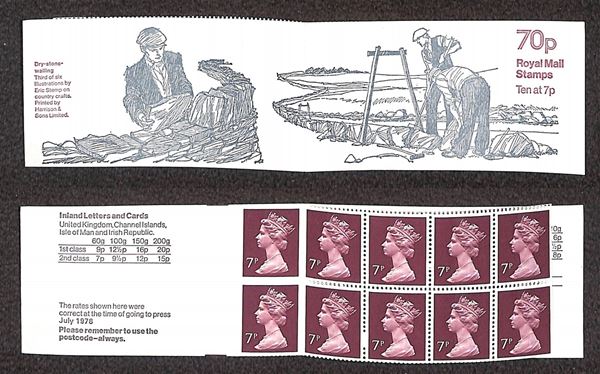 1978 - 70p Folded Booklet “Dry - Stone - Walling” (FD4A) - left hand margin - nuovi