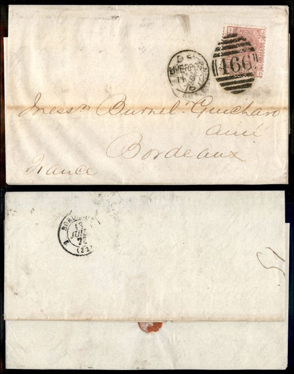 2 1/2 pence (40x - tav. 1) - lettera da Liverpool a Bordeaux del 11.7.76