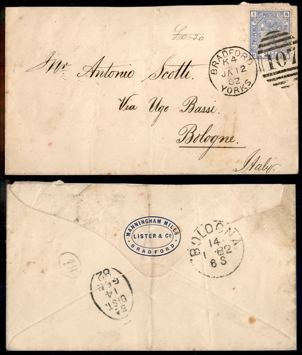 2 1/2 pence (51 - tav. 22) su busta da Bradford a Bologna del 12.1.82
