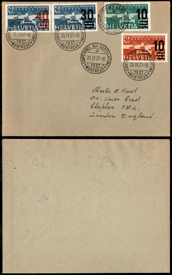 20 aprile 1937 - Montreux/Conference des Capitulations - busta per Londra (286 + 291/293)
