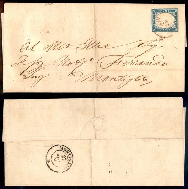 20 cent (15c - cobalto latteo chiaro) su lettera da Torino a Montiglio del 26.9.56 (1.200)