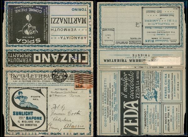 20 cent (2) + parte di 20 cent (109 - strappato all’apertura) su busta da Roma a Alassio del 27.12.21 - Diena (1.600)