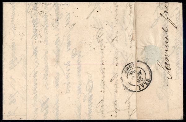 20 cent (28) annullato in transito - lettera da Digione a Gray del 26.4.68 - dentellatura carente (riparata) in basso