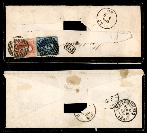 20 cent (8 I) + 40 cent (9 I) - bustina da Gand per l'Italia del 5.9.1860 con indirizzo ritagliato - difetti - da esaminare