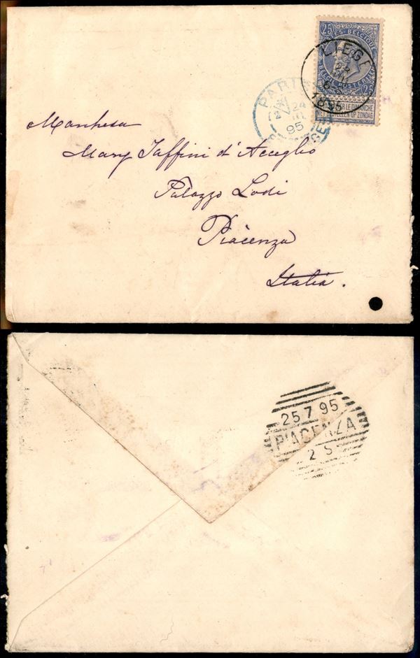25 cent (55) - busta da Liegi a Piacenza del 23.7.95 via Parigi