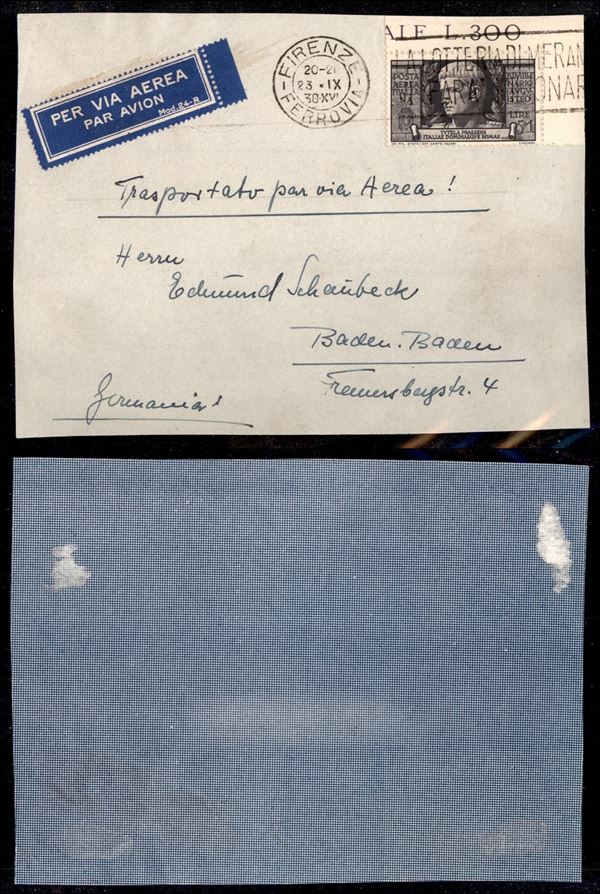 5 lire Augusto (110 - Aerea) - frontespizio di aerogramma da Firenze a Baden Baden del 23.9.38