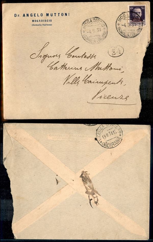 50 cent (166) su busta da Mogadiscio a Vicenza del 4.8.31 (200)