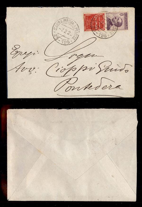 50 cent Columbia (11) isolato su busta da S. Maria a Monte (25-195) a Pontedera del 7.2.25 (100)