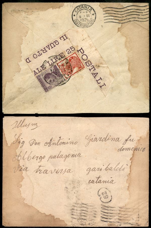50 cent Singer (16) angolo di foglio a chiudilettera al retro di busta da Messina a Catania del 4.2.25
