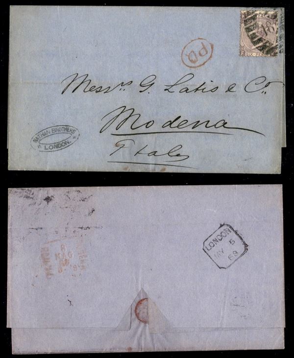 6 pence (30) su involucro di lettera da Londra a Modena del 5.5.68