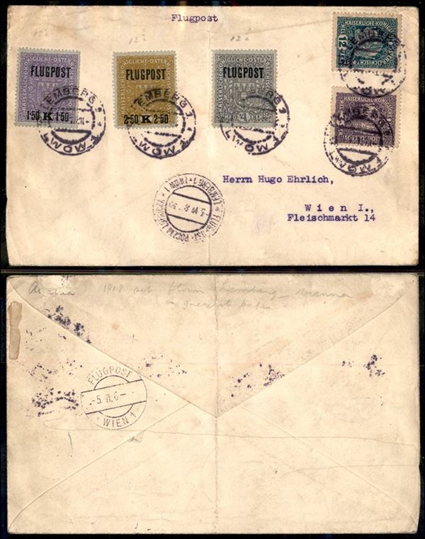 Aerogramma da Lemberg 1 a Vienna del 5.6.18 (unif. A1/A3+143+147) - piega centrale