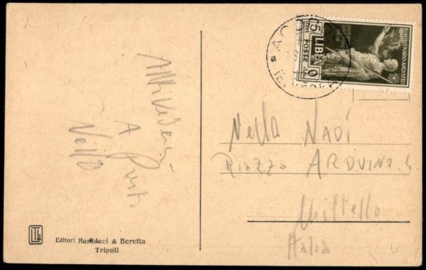 Agordat (Eritrea) 18.6.43 - 5 cent Augusto (152 Libia) isolato su cartolina per Militello