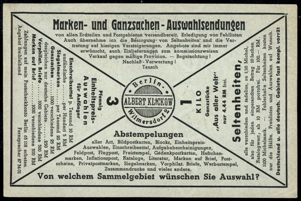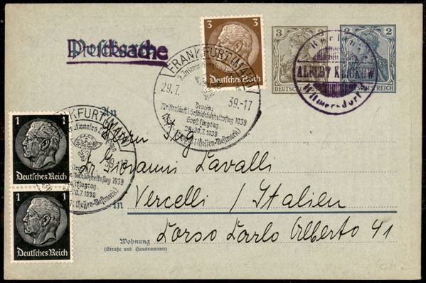 Albert Klickow - cartolina postale con complementari da Francoforte a Vercelli del 29.7.39