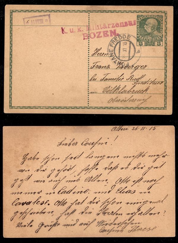 Altrei (P.ti 5) - cartolina postale per Volklabruck del 28.11.15