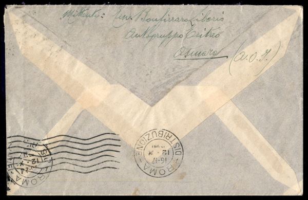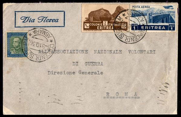 Asmara Concentr. Suss. P.M. - aerogramma per Roma del 9.10.1936 (198 + 205 + Aerea 21)