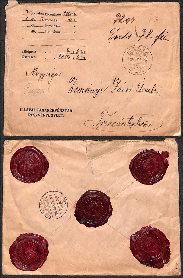 Austria/Ungheria - Assicurata con denaro da Illava a Trecsen Teplicz del 26.10.08