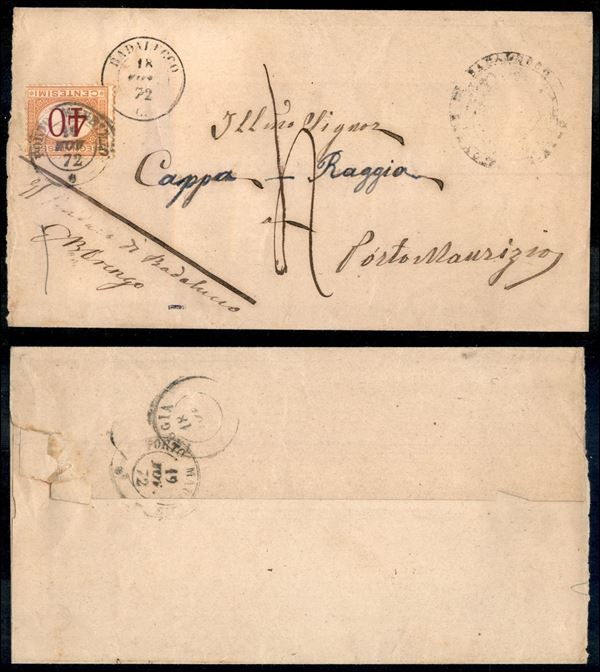 Badalucco (P.ti 8) su piego per Porto Maurizio del 18.8.72 tassato in arrivo con 40 cent (8 - Segnatasse)