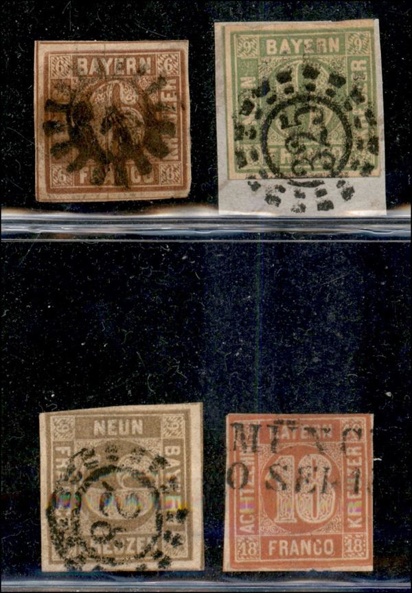 Baviera - 1850/1862 - quattro valori diversi (4 + 5 + 11 + 13) usati - qualità mista - da esaminare