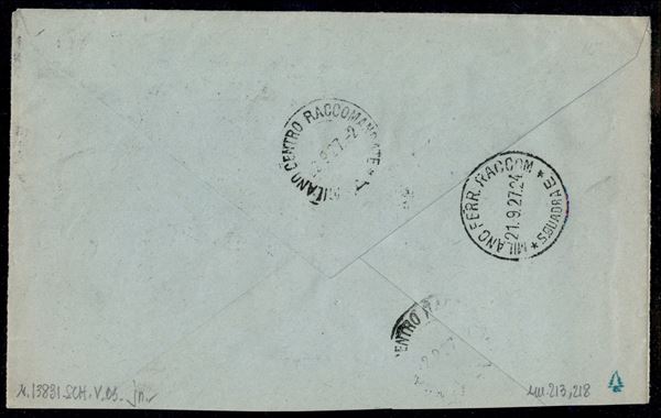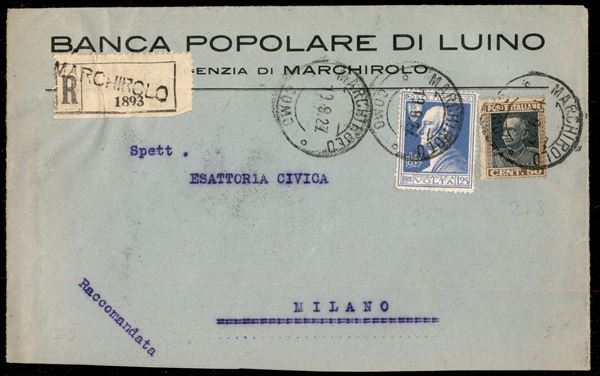 Busta affrancata con 1,25 lire Volta (213) + 50 cent Parmeggiani (218) da Marchirolo 19.9.27 per Milano - ex coll. Provera