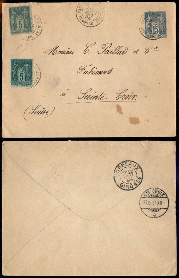 Busta postale da 15 franchi con complementari (54 due) per la Svizzera del 22.9.94