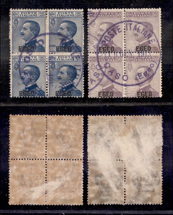 Caso (Egeo) /Poste Italiane - Soprastampati (1/2 - Egeo) - quartine usate