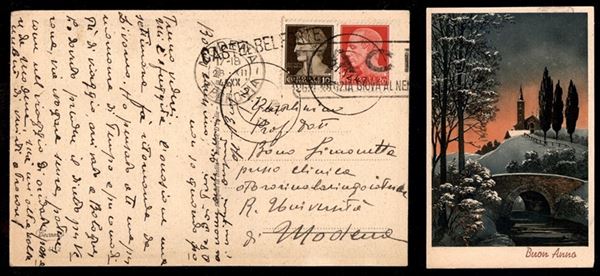 Castelbelforte + muto a data 27.12.41 - cartolina affrancata (245+247) per Modena
