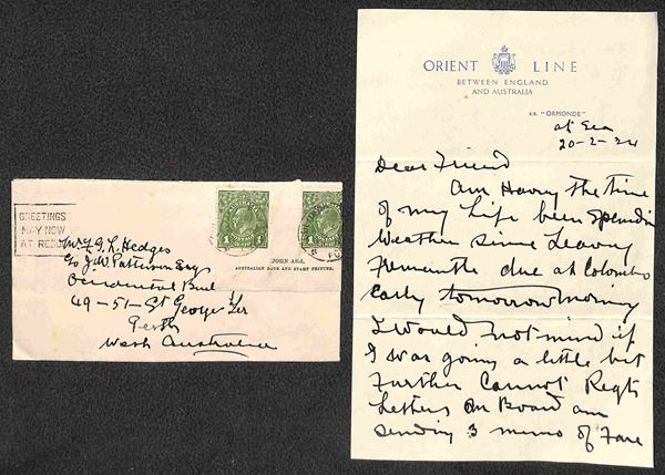 Coppia del 1 penny (98) bordo foglio con interspazio - ripiegata a destra al verso di busta da Colombo a Perth del 24.2.34
