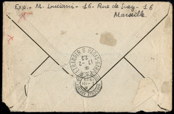Crash Flight - Aerogramma da Marsiglia a Saigon del 16.2.29 con la linea Francia Indocina - "Raid Interrompu Par Accident Retour a l'Envoyeur"