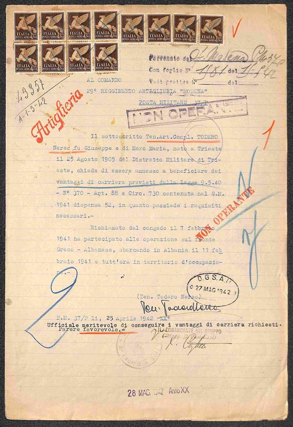 Dodici 50 cent (11 - Aerea) usati fiscalmente su domanda dalla P.M. 37 P del 25.4.42