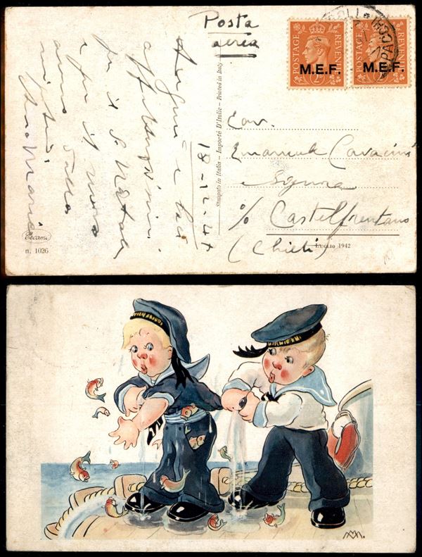 Due 2 pence (7) su cartolina da Tripoli a Chieti del 18.12.47 (160)