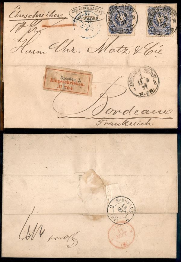 Due 20 pfennige (34) su raccomandata da Dresda a Bordeaux del 11.9.77