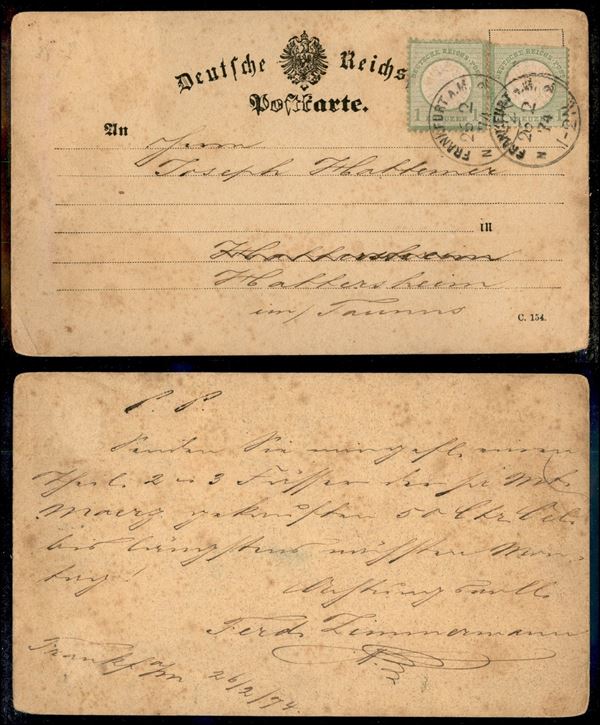 Due pezzi del 1 kreuzer (23 - uno corto in alto) - cartolina da Francoforte del 26.2.74