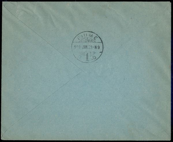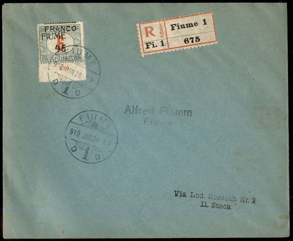 Franco 45 su 6 filler (29caa - varieta) bordo foglio con sbarretta a cavallo (solo in alto) e Fiume in alto a sinistra - raccomandata per cittą del 28.1.19