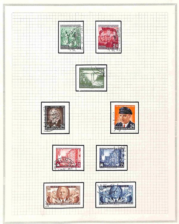 GERMANIA - DDR - 1950/1954 - Collezione di valori e e serie complete del periodo montate su 15 fogli artigianali (246/434) - usati