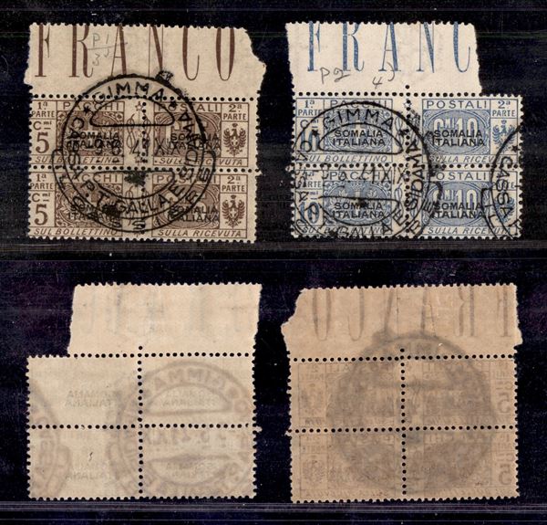Gimma/Cassa P.T. Galla e Sidama - Pacchi Postali (1/2) - 2 coppie verticali bordo foglio usate il 9.6.1941 (340++)