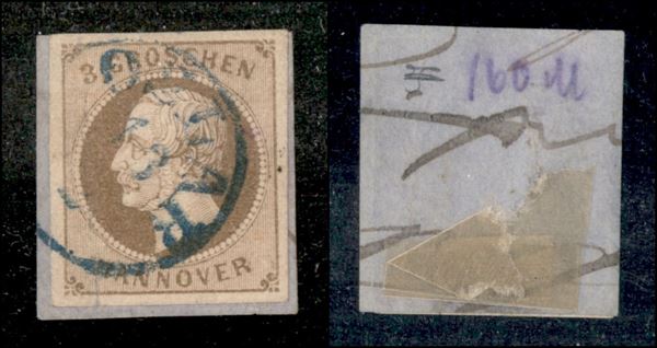 Hannover - Oslar (azzurro) - 3 groschen (19) usato su frammento - piccolo strappo in basso a sinistra (precedente l'uso)