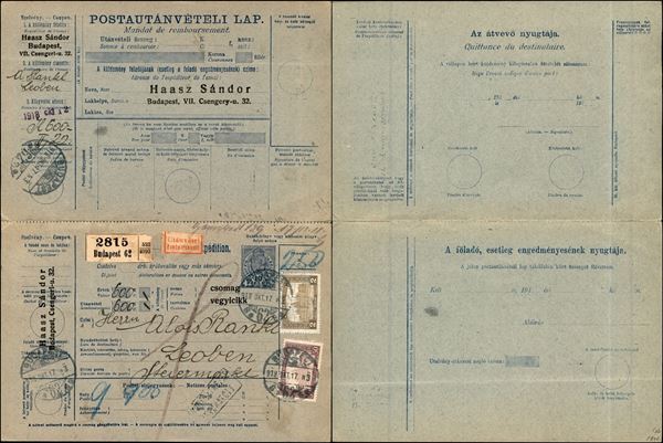 Intero doppio bollettino pacchi da Budapest a Leoben del 17.10.18