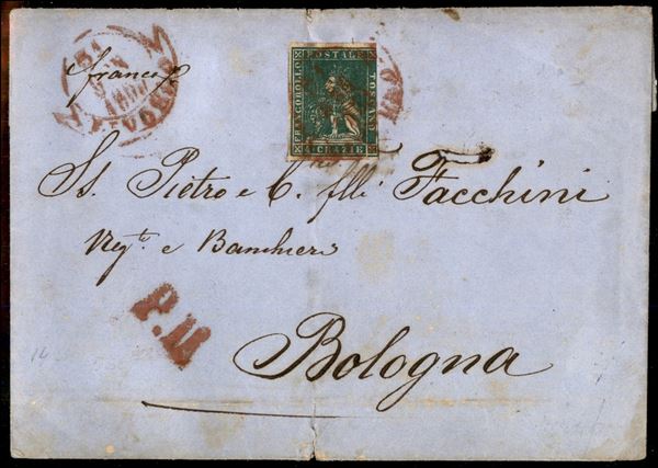Livorno ( rosso - P.ti 6) - 4 crazie (14) corto a destra - lettera per Bologna del 31.1.59
