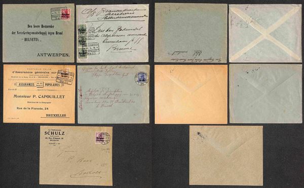 Occupazione Tedesca - 1915/1917 - Cinque buste con diverse affrancature del periodo