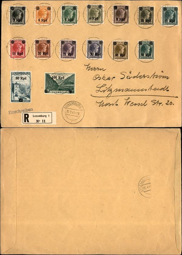Occupazione Tedesca - Soprastampati (17/29 + 31/32) - quindici valori su raccomandata per Litzmann del 31.3.41