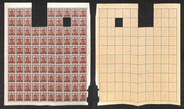 Occupazione Tedesca Albania - 1943 – Foglio con 95 pezzi del 1 quind su 3 bruno (Unif. 1) – gomma integra