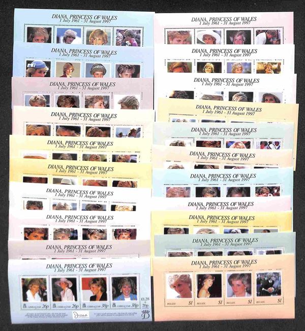 Paesi del Commonwealth - 1997 - Principessa Diana - insieme di 21 foglietti emessi da diversi paesi - gomma integra (140+)