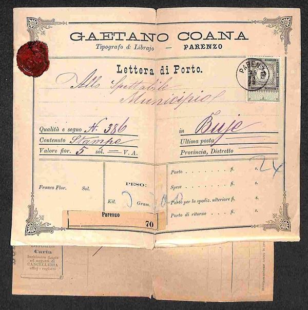 Parenzo - marca fiscale da 5 kreuzer su lettera di Porto (con unita fattura) per Buje del 25.11.79