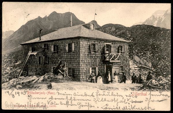 Pfitscherjoch Haus (P.ti 6) - cartolina animata del 19.8.1905 - molto bella